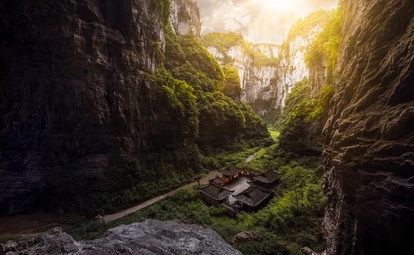 武隆天生三桥又名天坑三硚,是全国罕见的地质奇观生态型旅游区,属典型的喀斯特地貌。景区以天龙桥、青龙桥、黑龙桥三座气势磅礴的石拱桥称奇于世,属亚洲最大的天生桥群。 天生三桥位于武隆县城东南 20 公里的白果乡与核桃乡交界处,大自然造就的 3 座天生石拱桥,具有雄、奇、险、秀、幽、绝等特点,经历了上千万年的风风雨雨,至今却鲜为人知。2011年7月6日,武隆天生三桥风景区正式被国家旅游局批准为国家AAAAA(5A)风景名胜区。关于三桥,在大自然的无数杰作中,它也可以当之无愧堪称独步。这三座桥的高度、宽度、跨度分别在150、200、300米以上。三桥呈纵向排列,平行横跨在羊水河峡谷上,将两岸山体连在一起,形成了"三桥夹两坑"的奇特景观。即便是从全世界范围来看,在距离几百米之内就有如此宏大的三座天生石拱桥和两个巨型的由塌陷形成的天坑也是世间罕见的,因此,天生三桥是当之无愧的"世界天生桥群之最"。